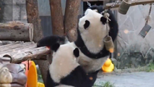 大熊貓“渝可”從吊橋掉下來(lái) 還不忘緊緊抱住妹妹“渝愛(ài)”