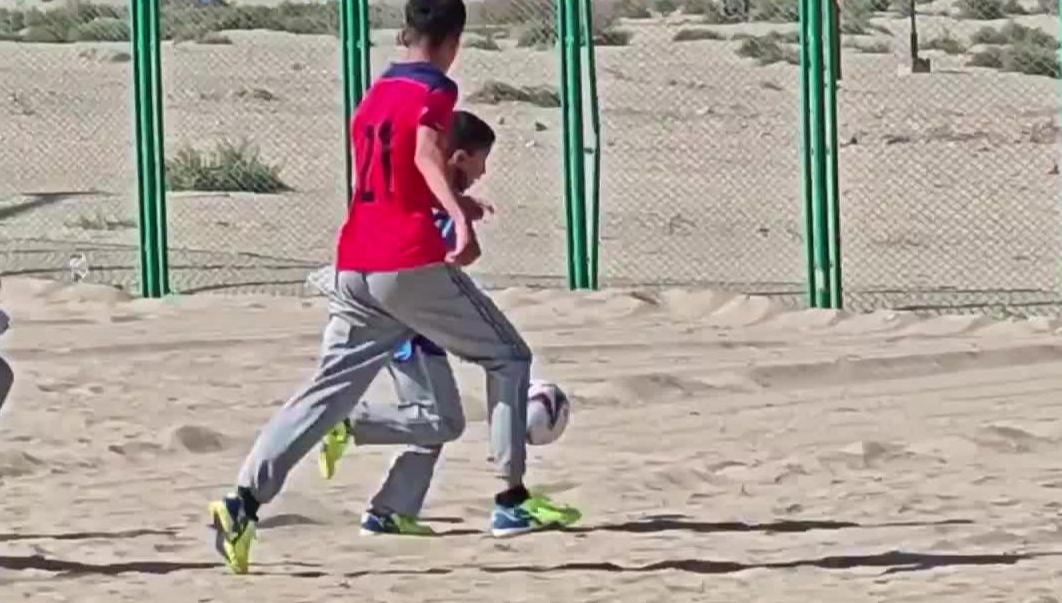 新疆少年沙地里踢足球 萬(wàn)水千山熱愛(ài)無(wú)阻